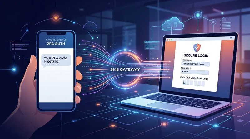 SMS brána je mostem mezi vaší aplikací nebo službou a mobilními telefony uživatelů. V kontextu 2FA hraje klíčovou roli v doručování jednorázových ověřovacích kódů (OTP). Proces probíhá následovně: